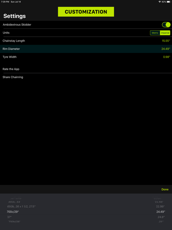 Chainring helps you quickly calculate all necessary characteristics of your fixed-gear or single speed bikes like a ratio, a number of skid patches, development, gear inches, and a recommended number of chain links.