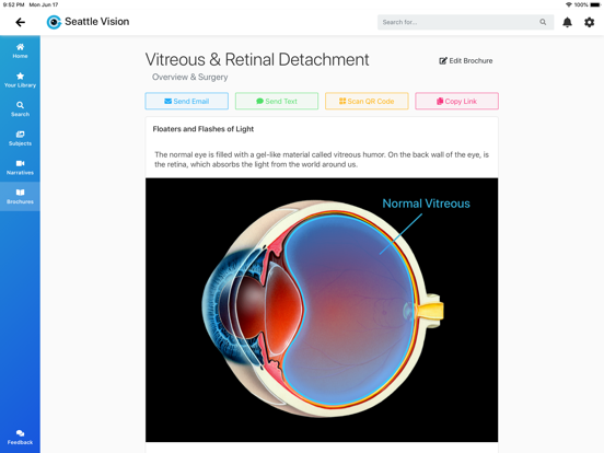 • Easy Sharing: Send brochures however you like. Deliver an email, send a text message, or scan a QR code.
