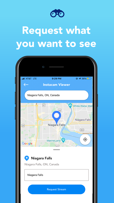 Instacam gives you the power to see anywhere, anytime. Are you stuck at home due to the virus? Simply request to see a location using Instacam and someone at that place will video stream to you! 100% free with no ads.
