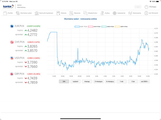 Kantor.pl to gwarancja najszybszej i korzystnej wymiany walut. Kursy walut prezentowane w aplikacji kantor.pl odświeżane są co 2 sekundy, dzięki czemu wymiana odbywa się online w aktualnych notowaniach rynku ForeX.