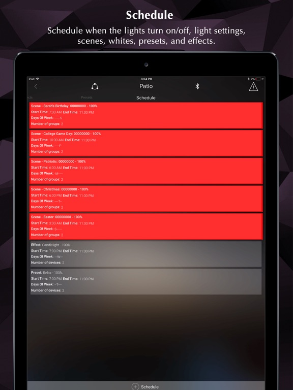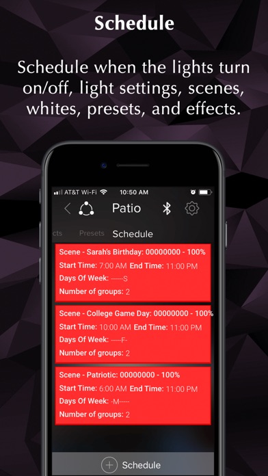 SCHEDULES TO ENHANCE YOUR DAILY ROUTINE: Schedule exactly the right light for the right time. Let your light energize you in the morning and help relax you at night, and more.