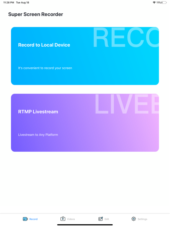 Super Screen Recorder is a professional live streaming + screen recording &+ video editing app. Recording without watermark!