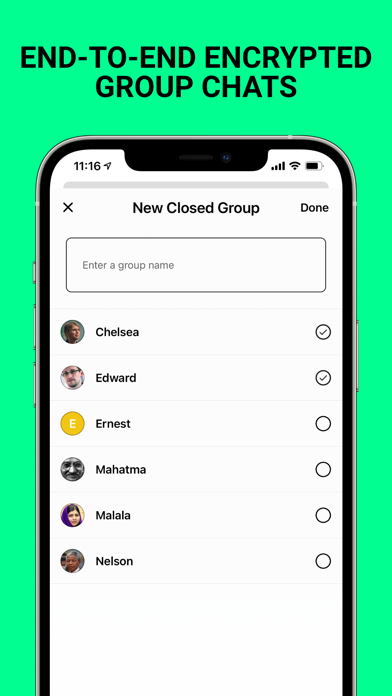 • Closed groups: Private, end-to-end encrypted group chats for up to 100 people