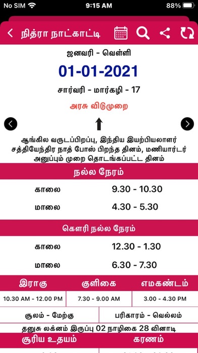 1. Nithra ‘Tamil Calendar 2021 Offline' app consist of details for the entire year 2020/365 days with daily and month view