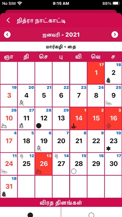 4. Tamil Panchangam 2021, Subamuhurtham days, Fasting days for 2021 are shown monthly wise in this offline app