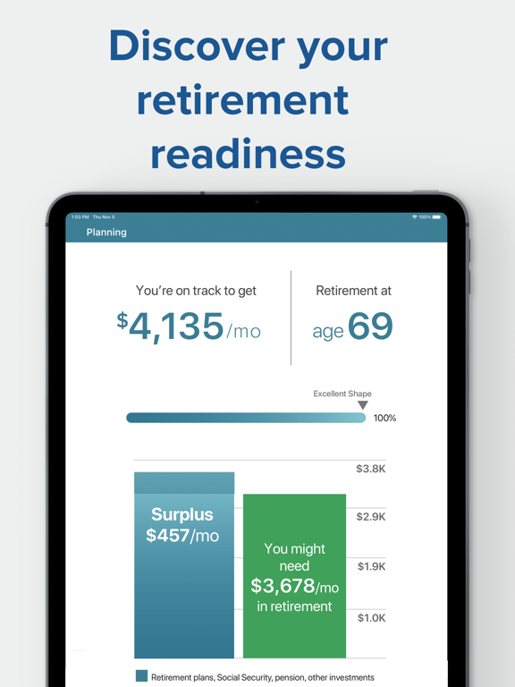 Using fingerprint or facial recognition, you can look at your account on the go, or see your retirement readiness using My interactive Retirement PlannerSM. Get the retirement and financial planning help you want, including: