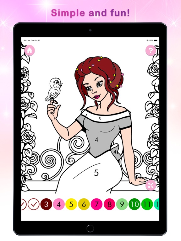 Princess Color by Number – Princess Coloring Book is very easy to use: