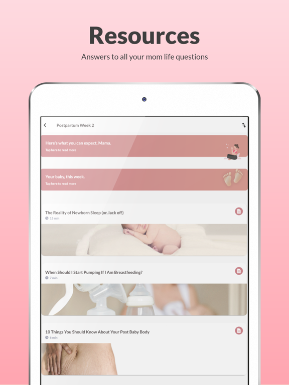 - Weekly “what to expect” for both you and baby. Not the kind where we show you a size of a fruit. Think of us as your girlfriend next door, we don’t judge mama.