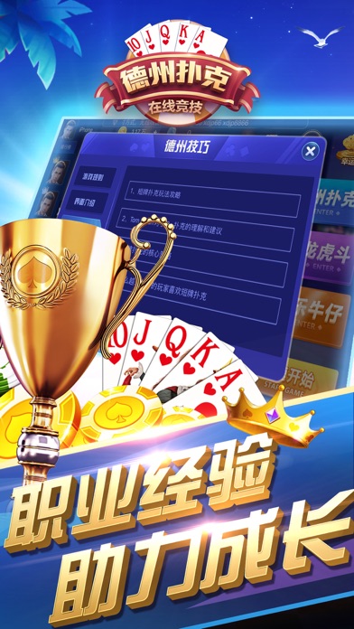 風靡世界的德州撲克遊戲上線啦! 快來德州撲克遊戲中與眾多玩家一起競技! 盡情發揮您的實力,在眾多實力德州撲克遊戲玩家中脫穎而出吧! 超多玩法:我們上線了多種德州撲克玩法,包括有短牌玩法、奧馬哈、經典德州撲克等等,以滿足您對德州撲克玩法的多樣需求 精美設計:我們認真的根據節日調整我們的遊戲風格,以期讓您玩得更加開心!希望您能在遊戲競技的同時收穫到更多快樂和陪伴! 公平競技:德州撲克競技遊戲一定要做到公平,我們對此亦十分重視並踐行,以保證大家能在這裡體驗您的策略能力! 遊戲金幣:lucky spin轉盤功能是我們專門為大家做的遊戲,每天登錄遊戲都可以領到豐厚的金幣!