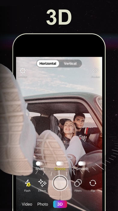 Create “moving” 3D pictures in seconds: select a subject to shoot and move your phone, capturing the subject from differing angles in the process.