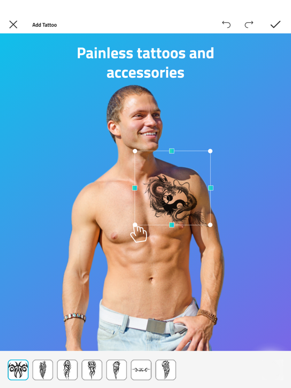 A dynamic face and body editor app with tonnes of editing options for the perfect face or body. Transform your photo in minutes. You can enhance your abs, colour, height, waist, muscles, abdominal, chest, face, hair, beard, mouth, nose, eyes, earrings, bracelets, rings, necklaces, glasses and tattoos and more.