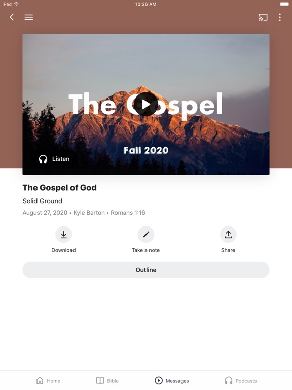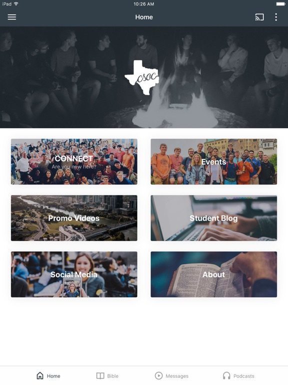 This app will help you stay connected in your daily Christian life at Texas. With this app you can: - Read through the New Testament in one year - Watch or listen to past messages - Stay up to date with events and push notifications - Share your favorite content via social media - Download audio for offline listening
