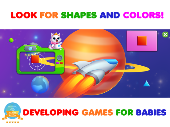 Welcome to the new developing children’s games “World of Shapes” - this fun, bright game will easily introduce your kid to colors, shapes, and sizes.