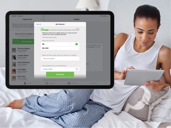 Get quick, convenient urgent care through your mobile device – day or night – with Duke Health Anywhere. Next time you’re feeling sick have a live video visit with a board-certified doctor who will assess your condition, offer a diagnosis and treatment plan, and if necessary prescribe medication. Video visits are ideal for common urgent care needs including cold and flu symptoms, allergies, rashes, and minor infections.