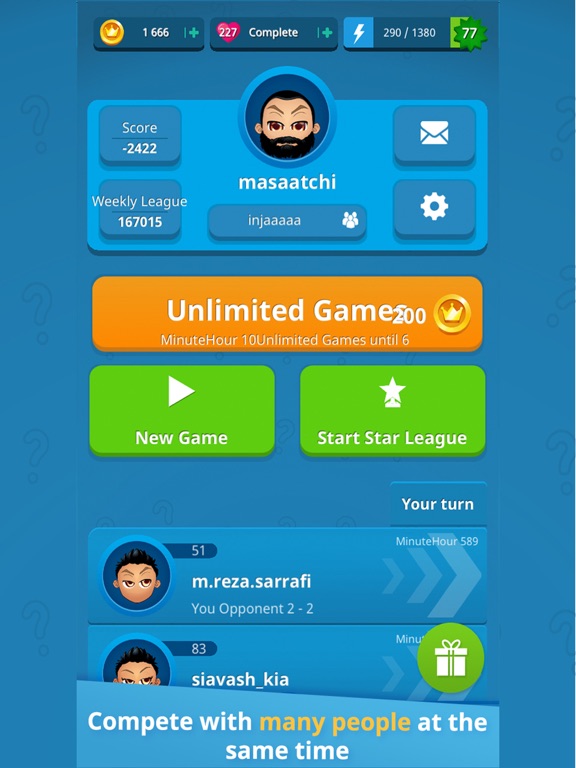 Quiz of Kings is a smart, free and online social game in which you can make new friends and compete with them.