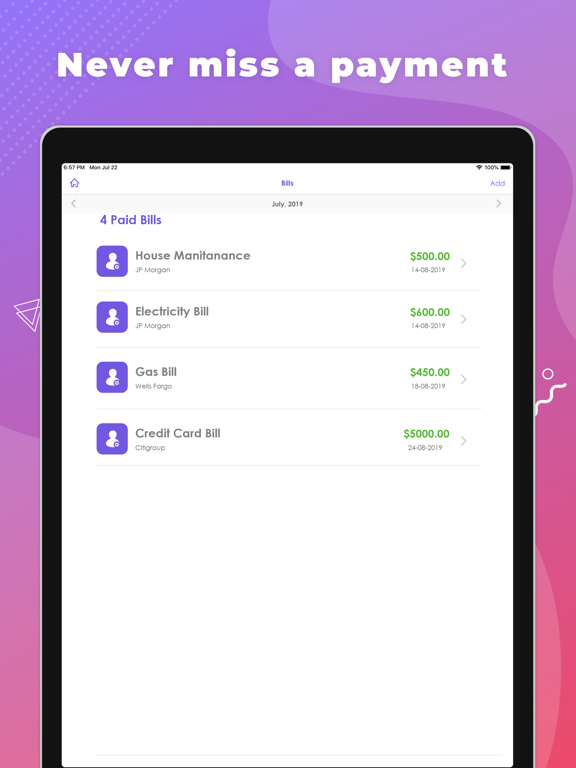 Never forget to pay a bill on time with this app and get away from late payment fees. Simply add all your bills to this app and it will remind you to pay the bills on time.
