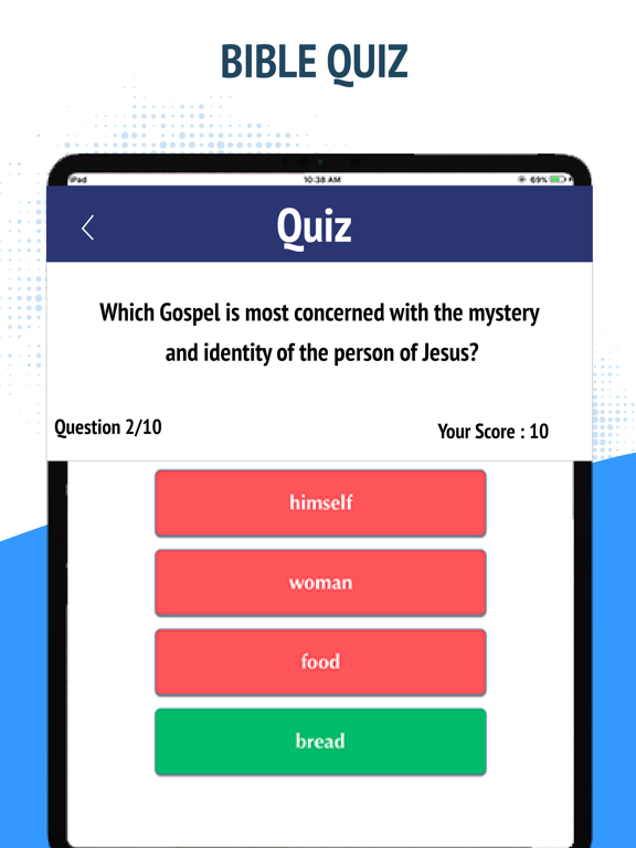 • Bible Quiz: Play the quiz from free NASB Bible - NAS Holy Version App to keep your spiritual development on check.
