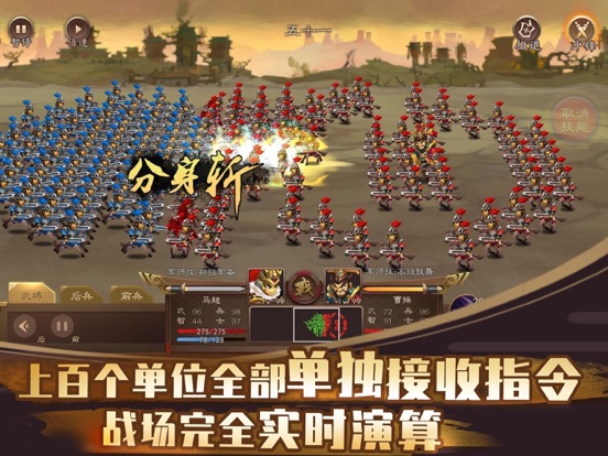 实现气势恢宏的100vs100同屏战场。每个单位都有独立AI、单独演算,不再拘泥于动画式的数据对碰。