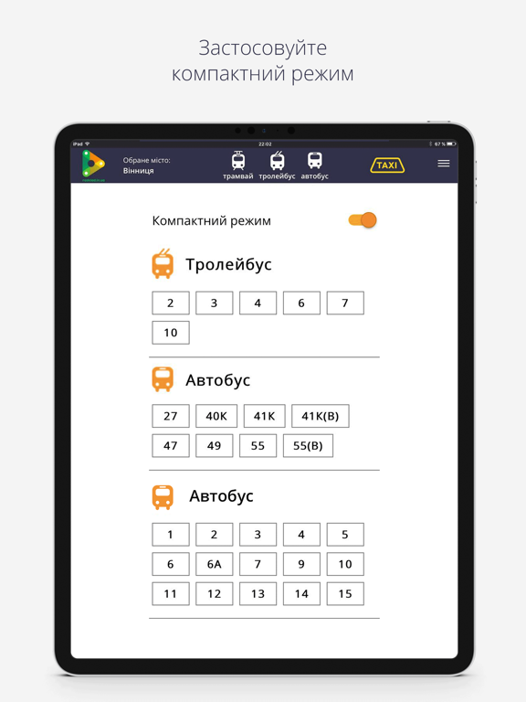 rozklad.in.ua - це додаток, який містить розклад руху та маршрути громадського транспорту у великих і малих містах, зокрема: Київ, Бровари, Вінниця, Житомир, Івано-Франківськ, Кременчук та інші. Він містить розклад руху на тиждень, зупинки на маршрутах, а також відстані до них у хвилинах. Допоможе спланувати час поїздки і зорієнтуватись у незнайомому місті.