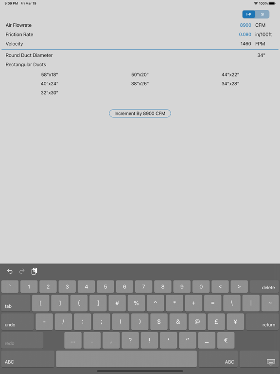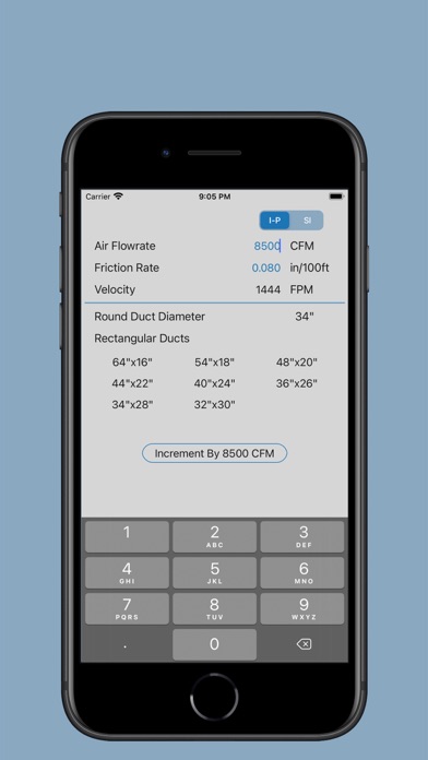 Users can change between I-P and S-I units by tapping the toggle switch at the top.