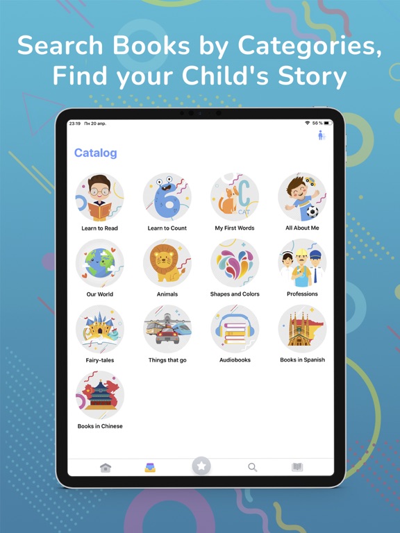 The books in our app are divided by interests, while a special system of personal recommendations allows a young learner to read one book after another, full of exciting discoveries and helpful information.