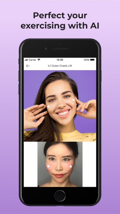 There are approximately 30 face training exercises with video instructions. Depending on the exercise, our AI technology guides you to move your facial muscles correctly.