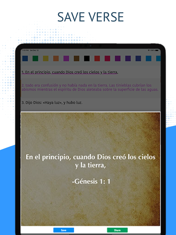 • Highlights: Select custom colors to highlight the verses.
