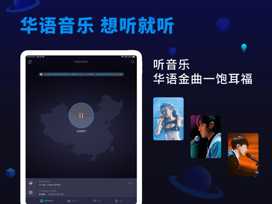 一键加速回国应用,随时听音乐、看视频,畅玩游戏,全球线路,极速稳定,告别延迟卡顿 ,帮助海外华人畅快访问国内各大主流平台。