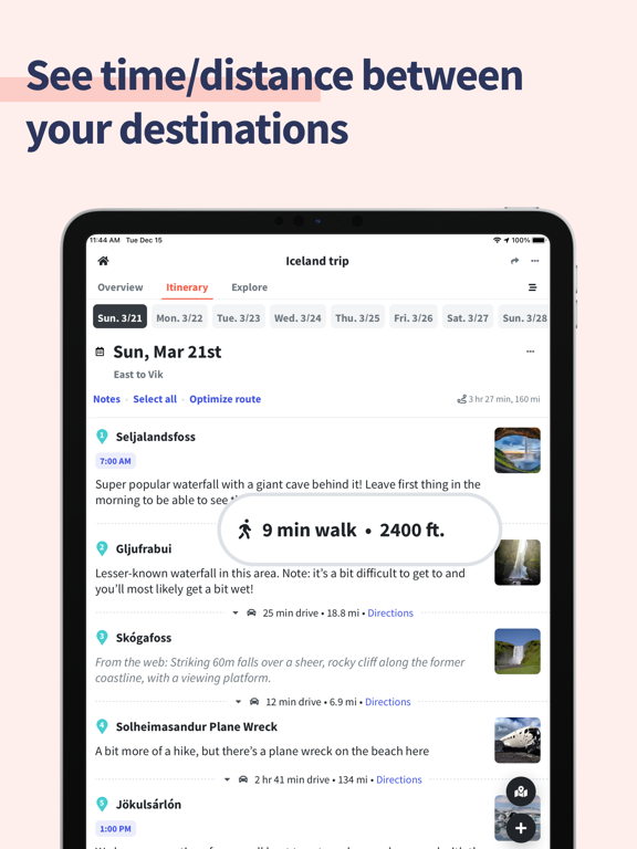 Access flights, hotels, and attractions in one app. Forward flight and hotel confirmation emails to import them directly into your trip plan, or connect your Gmail to automatically add them. Prefer to keep high-level plans? Make generic lists like ‘Things to do’ and ‘Restaurants’ you want to eat at. Traveling on a tight schedule and want to create a detailed itinerary? Organize your day by adding start (and end) times, perfect for keeping track of tickets and reservations.