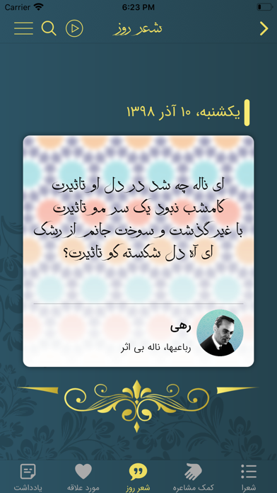 برای ثبت یادداشت از دکمه بالا سمت راست (+) در شعرها استفاده نمایید.