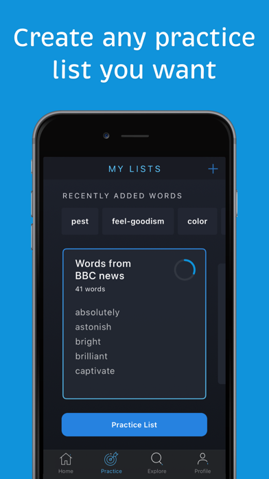 3. For inspiration, check out the ""Explore"" section, which has professionally-curated word lists for various levels.
