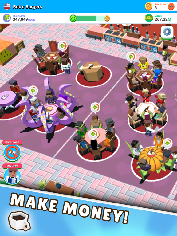 Turn your diner around from humble beginnings to global coffee franchise! Add more tables, hire better staff and buy extra facilities as you see your profits multiply!