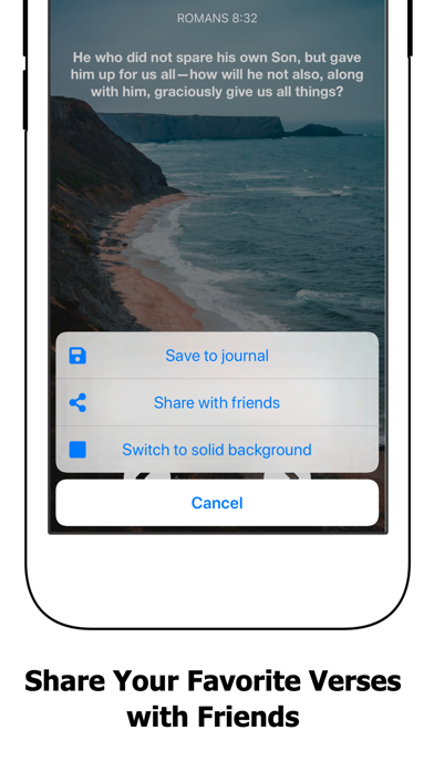 You can also save verses and add personal notes so you can look back later at your journey and the verses that impacted you from time to time. Your saved verses show up as beautiful journal entries. Your journal entries are only stored on your phone and not on our servers.