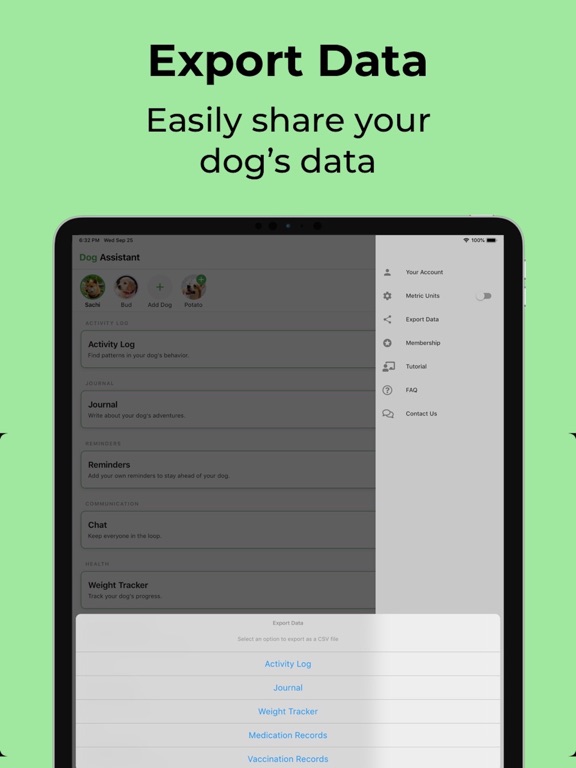 Dog Assistant Life allows you and your pack to stay updated on what your dog is up to, whether sleeping, walking, peeing, pooping, or anything else you wish to track. Features such as our Activity Log, Reminders, and Chat function coupled with our newly added Medication and Vaccination tracker, Pattern Charts, Journal, Weight Tracker, and easily exportable data will allow family, friends, and dog walkers to work together to manage your dog’s day to day activities.