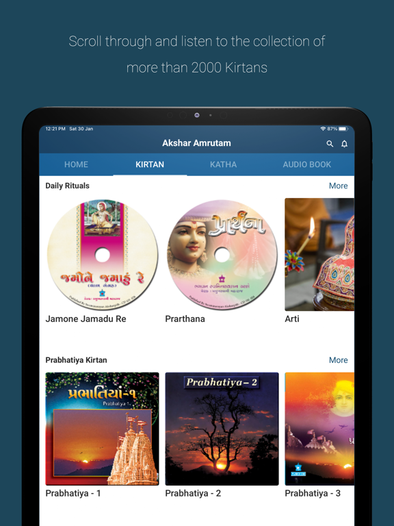 1. Home 2. Kirtan 3. Katha 4. Audio Books