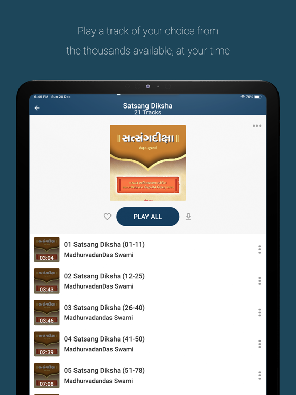 Audio Section - Vachanamrut, Swamini Vato, Bhagwan Shri Swaminarayan’s detailed Jivan Charitra (5 parts), Bhaktachintamani, Aksharbrahma Shri Gunatitanand Swami’s detailed Jivan Charitra (2 parts), Brahmswarup Bhagatji Maharaj’s detailed Jivan Charitra, Brahmaswarup Shastriji Maharaj’s detailed Jivan Charitra, Brahmaswarup Yogiji Maharaj’s brief Jivan Charitra, Brahmaswarup Pramukhswami Maharaj’s detailed Jivan Charitra (part 1 to 3), Eternal Virtues, Mahant Swami Maharaj’s brief Jivan Charitra (English version), Bhagwan Shri Swaminarayan na Bhaktratno and many other audio books.