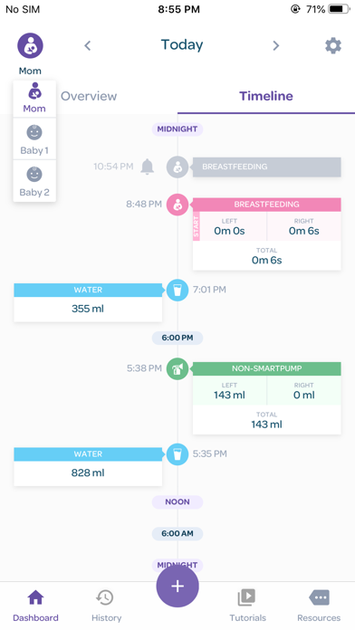 A Dashboard and Timeline view allow you to quickly look for trends and changes, keep track of set reminders or missed sessions, and gain insights on you and baby’s daily routines.