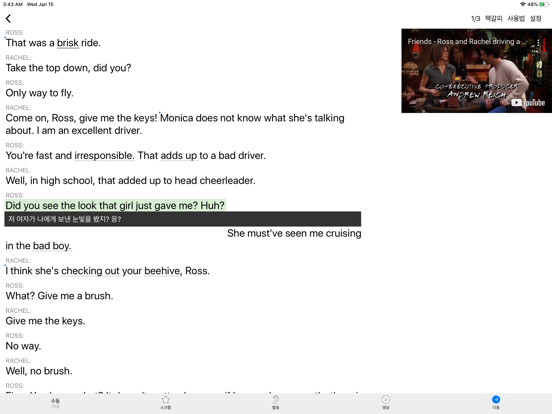 - 3단계 쉐도잉 : 원음을 듣고 0.5초 안에 동시에 발음이 되면 "마스터"