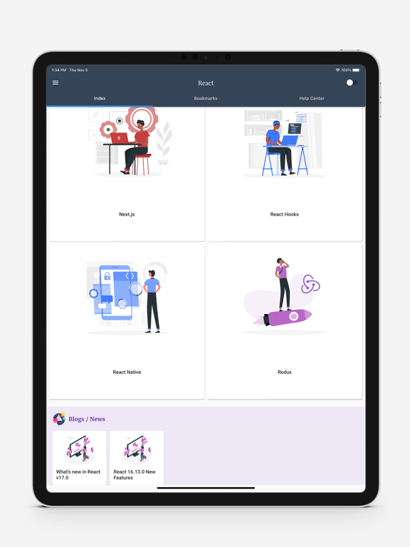 This app contains all the major topics of React v16.12 with Excellent Code Examples and projects. All the topics contain code examples so you can get a better understanding of what's going on. We are constantly updating this app with every new major React js release and adding more code snippets, Examples, and Projects.