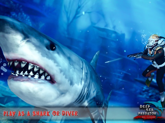 Play as man-eater shark In this ultimate battle between divers and sharks. Tear divers apart as you take on the role of the ocean's top predator, The Great White shark. Hunt down divers before they attack and fill your hunger meter to survive as long as possible in the deep sea.