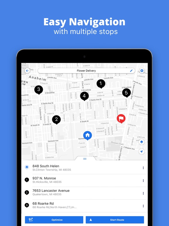 Quick Addresses Input: Our route planner allows users to quickly and easily add stops for deliveries.
