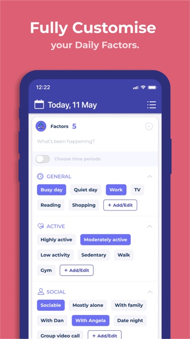 “I have a lot of physical and mental health symptoms due to stress from daily life. I have been struggling to find patterns and triggers for those symptoms and how they relate to what's happening in my day. This app allows me to track EVERYTHING.
