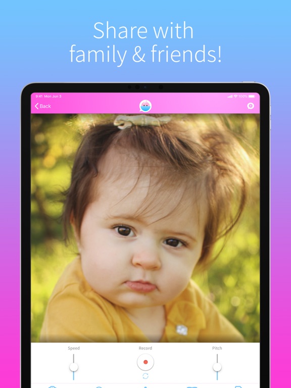 Bring photos of your baby to life! Make them speak realistically and share it as a video on Facebook, or email it as a special greeting to your friends and family.