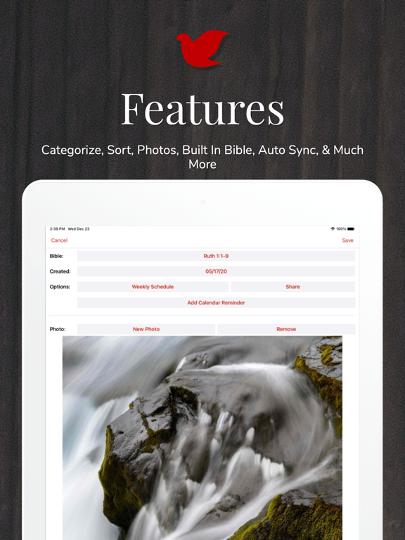 Based on the highly acclaimed Prayer Notes, Prayer. maintains the best functions, while adding a host of requested new features. Photo support, automatic device sync via iCloud, scripture references, automatic day/night mode (iOS 13 and newer), an updated look and feel, and much more.