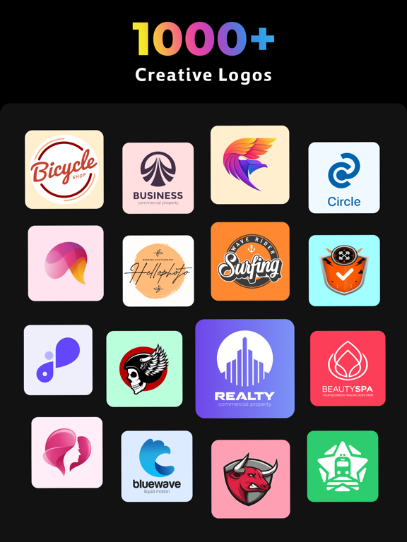 • Choose from the large gallery of templates we have carefully designed, and create a logo that looks completely professional.