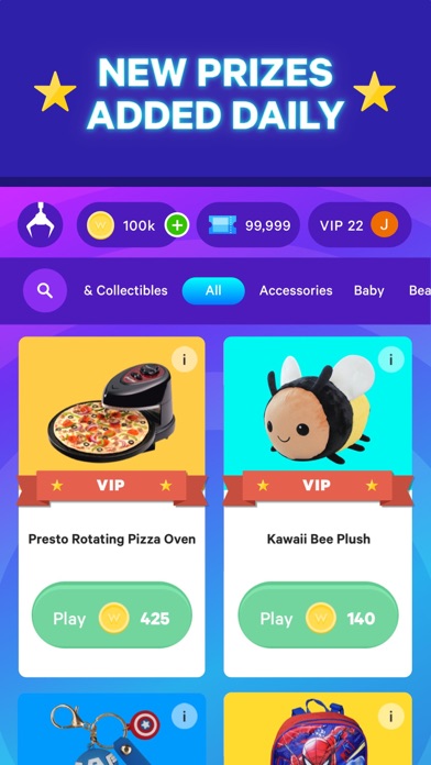 * Become a VIP to access free shipping and exclusive VIP claw machines