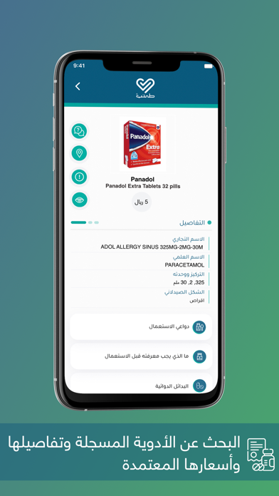 - البحث عن الأدوية المسجلة وتفاصيلها وأسعارها المعتمدة