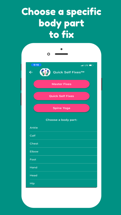 Quick Self Fixes do not diagnose or treat disease, injuries, or ailments. For safety reasons, prior to performing Quick Self Fixes, show this app to your Medical Doctor to be sure that the Quick Self Fixes are safe for you. Promptly stop doing any Quick Self Fix if there is pain.