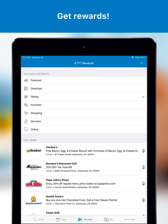 Use the GA Commute app to find rideshare matches and earn rewards in Georgia. Simply record your carpool, vanpool, walk, bike, telecommute, or transit trips in your GA Commute account and earn points that can be redeemed for rewards. Get started today – it's free and easy to do!