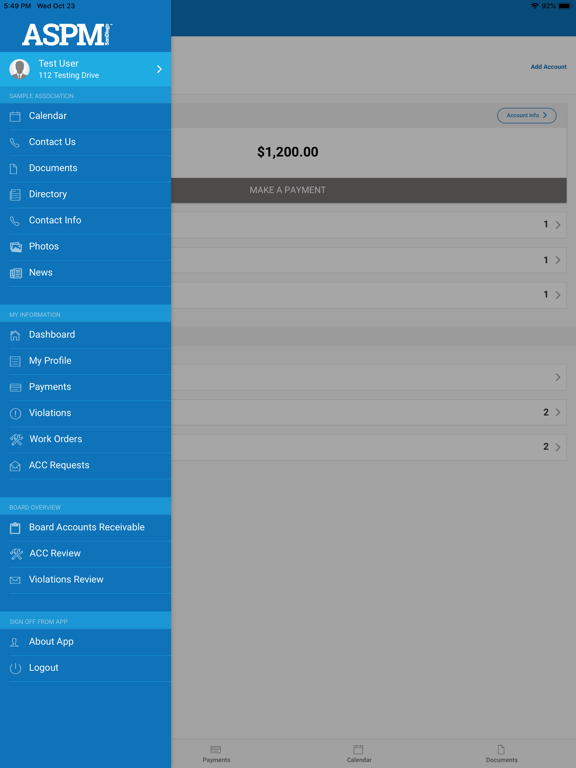 Board members who log in to the ASPM Homeowner App are granted additional access and are able to securely view private board information, including: